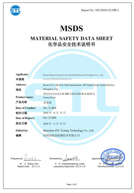 Estándar: | MSDS |